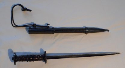 - Sheath:stitched leather sheath with blued steel throat and chape